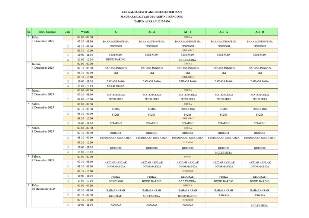 - SAS Ganjil dilaksanakan pada Hari Rabu – Rabu, Tanggal 3-10 Desember 2025 (selama 7 hari).