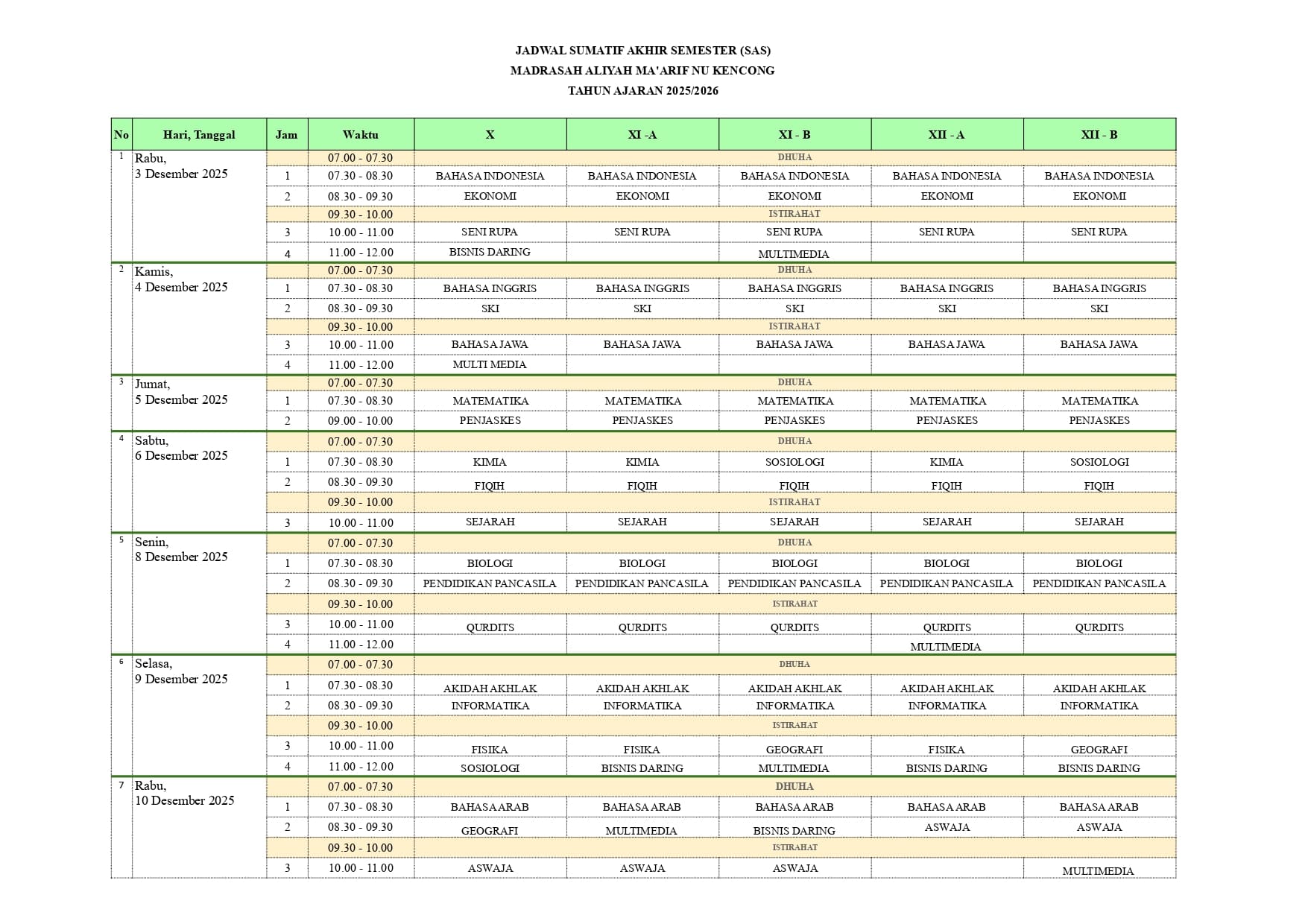 - SAS Ganjil dilaksanakan pada Hari Rabu – Rabu, Tanggal 3-10 Desember 2025 (selama 7 hari).